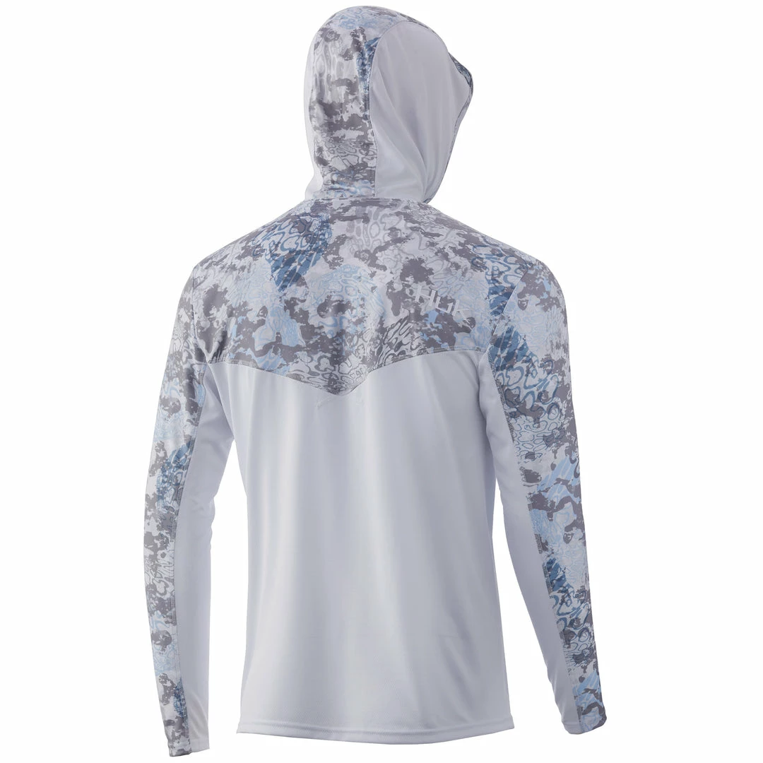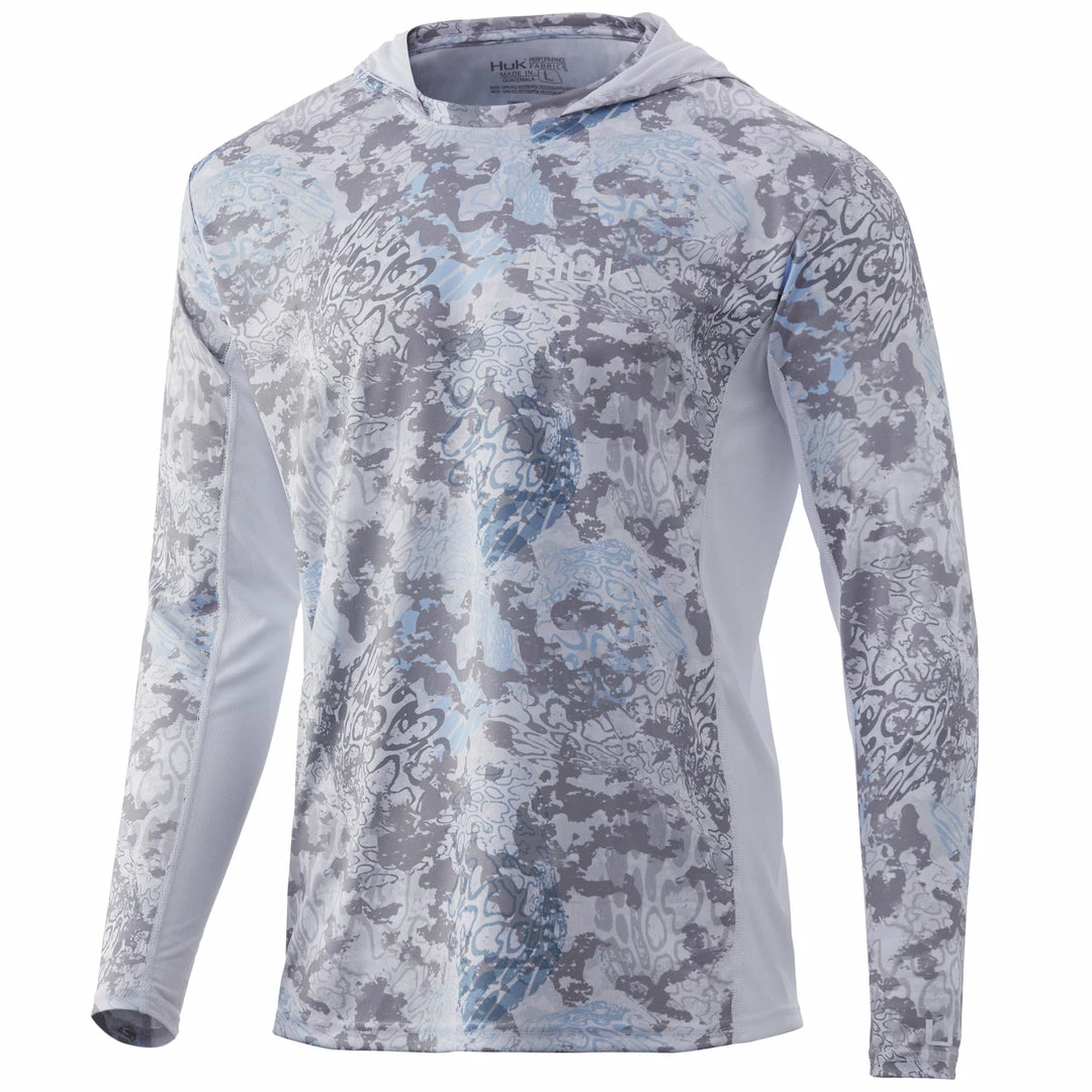 The Huk ICON X Tide Change Hoodie is the most technically advanced performance fishing shirt designed for hardcore anglers. This breathable material spreads moisture over a larger surface area, creating a rapid drying effect that cools the body after coming into contact with perspiration. The synthetic fibers allow air to pass through the shirt and contain a hydrophobic coating that transports sweat to drier areas, away from the skin.