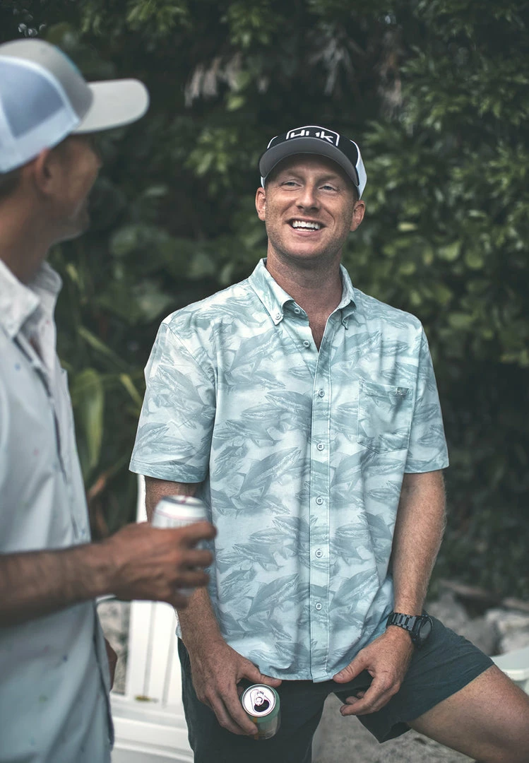 The Huk Kona Short Sleeve is a performance-packed button-down built to party. The Kona shirt is designed to easily transition from the boat to the bar. With all-day comfort for both on and off the water pursuits, the Kona is constructed using lightweight, breathable, quick-drying, moisture transport fabric with two-way stretch and a built-in microfiber sunglass wipe. The fit and function of the Kona were designed for fun in the sun.